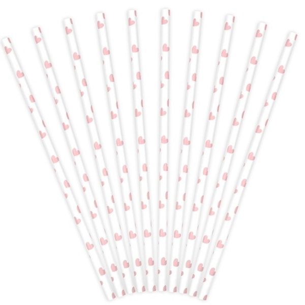 Slamky papierové biele so svetlo ružovými srdiečkami.